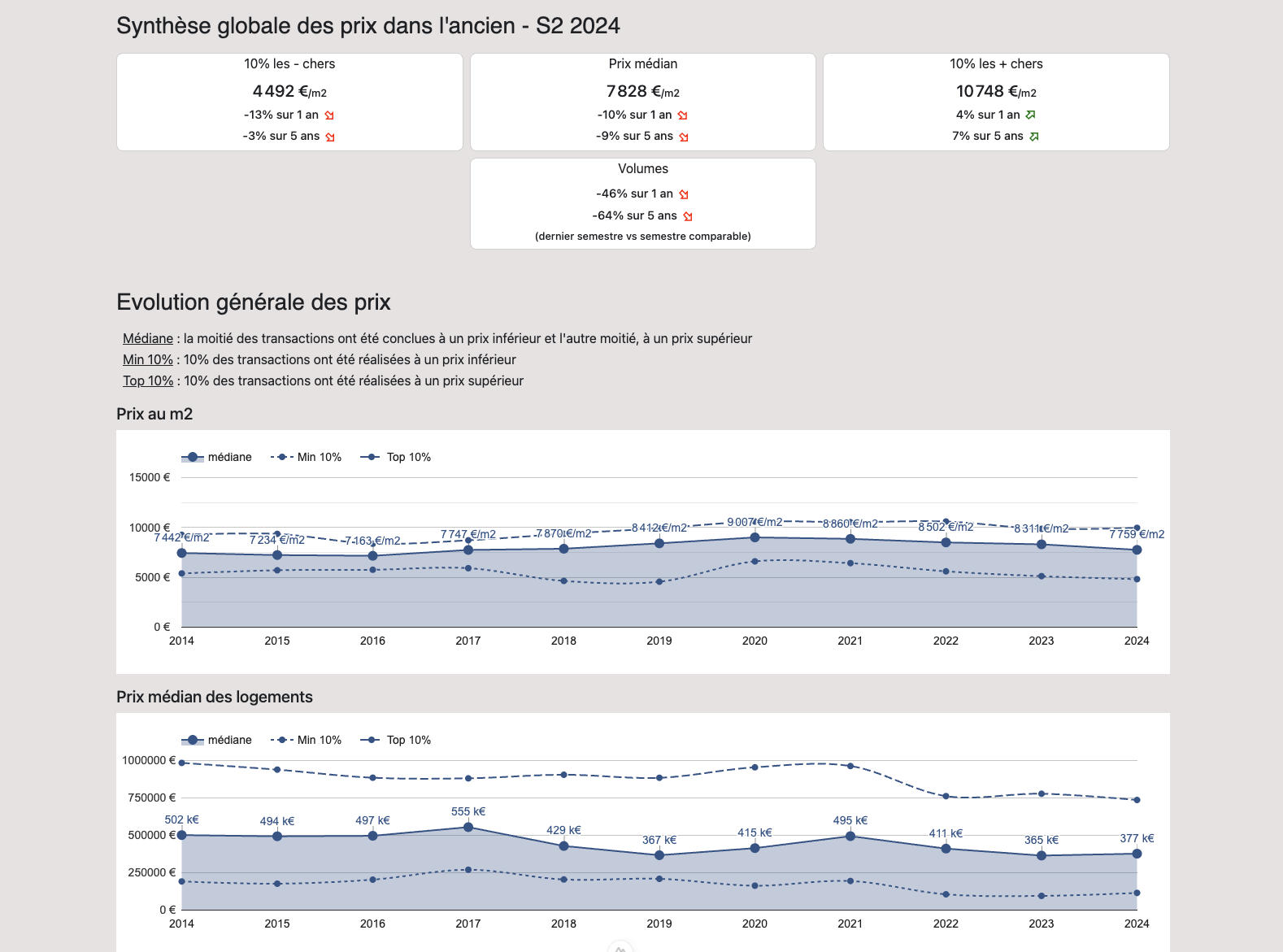 Affichez simplement la carte des transactions des 10 dernières années, avec des informations exclusives : année de construction, DPE et même étage.